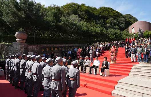 96岁新四军老战士储谓是出席9月3日大阅兵观礼的抗战老战士代表。储老回顾了在抗战期间新四军医疗卫生兵的亲身感受:在极其简陋和艰苦医疗条件下,那些英勇作战,身负各种伤病的战友们表现的坚定革命信念和顽强奋斗牺牲精神让他永生难忘。华中人民群众是新四军最坚强的后盾,没有人民群众的支持,就没有抗战的胜利,就没有今天的胜利。永远铭记历史,珍爱和平,建设更加强大的祖国,让先烈的鲜血不白流,让后代永远生活在和平和繁荣之中。 纪念活动中,新四军老战士褚渭激励年轻人珍爱和平为国效力,新四军第三代代表表示一定承担社会责任守卫家园。各界代表发言表达致敬先烈,为祖国繁荣强盛贡献才智和力量。铁军艺术团抗战歌曲联唱的激昂高亢歌声将活动推向了高潮。《新四军军歌》,铿锵有力的旋律让人仿佛看到了当年铁军将士们奋勇杀敌的英姿。《游击队之歌》,轻快活泼的节奏展现了游击队员们机智勇敢的战斗生活。当《大刀进行曲》的激昂旋律响起时,现场不少人情不自禁地跟着哼唱起来,他们的眼中闪烁着泪光,仿佛又回到了那个战火纷飞的年代。无人机在空中播散红色花瓣,花飞顿作思念雨,与参加活动嘉宾和各界代表向先烈敬献的鲜花相呼应…… 献花曲响起,礼兵抬起花篮,引领人们缓步走向象征抗日英烈战士纪念碑敬献鲜花、致敬英烈!这一刻,时间仿佛凝固,缅怀仪式开始。参加活动者依次走向纪念碑,献上手中的菊花表示敬意。 本次纪念活动,旨在重温新四军峥嵘岁月,挖掘红色故事背后的精神密码,探寻铁军精神在当代的传承与发展。从历史记忆到时代实践,从精神传承到青春担当,邀您共同见证这场跨越时空的红色致敬,感受永不褪色的铁军力量。 |