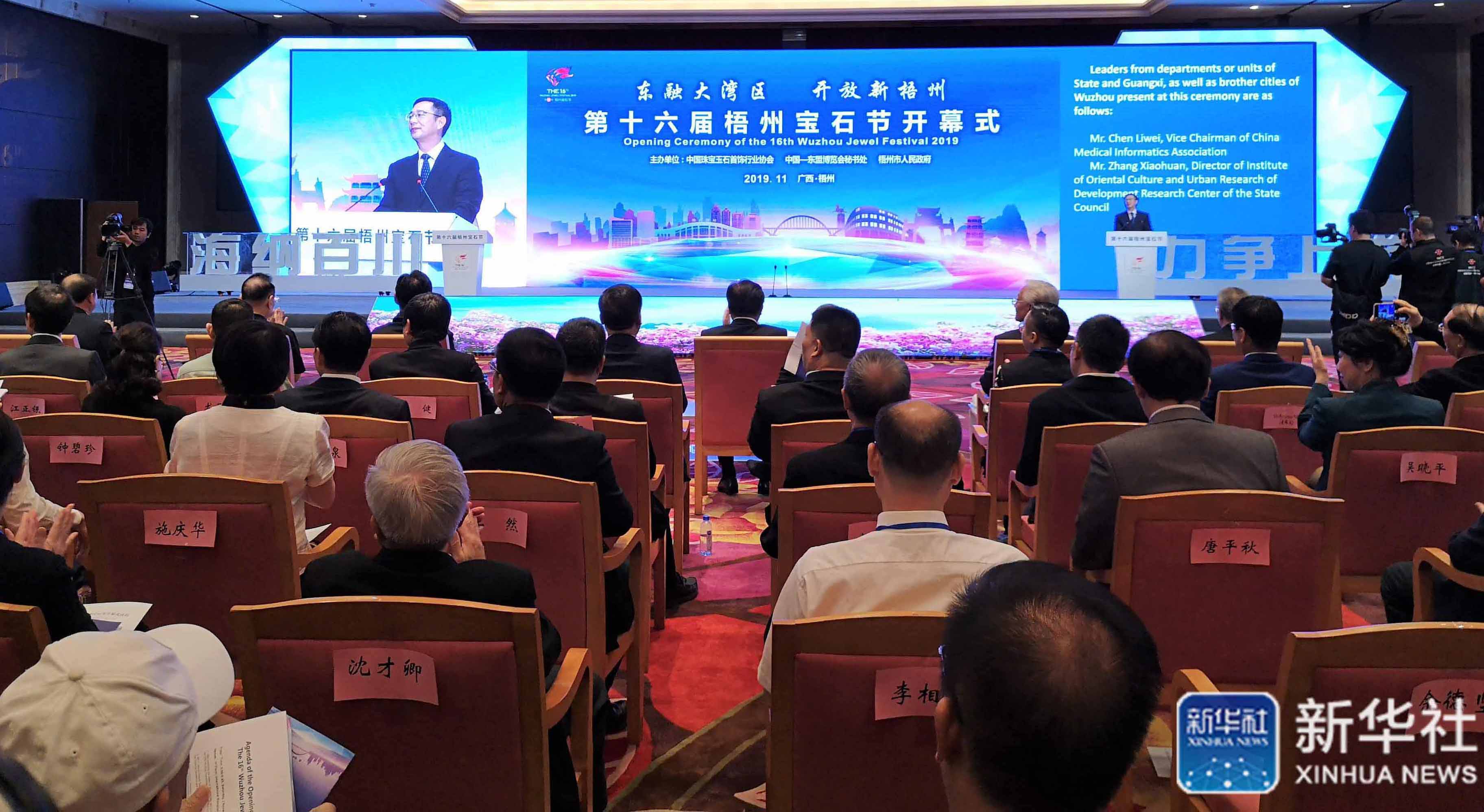 硕果飘香迎盛会,宝石璀璨谱华章。由中国珠宝玉石首饰行业协会、中国—东盟博览会秘书处、梧州市人民政府共同主办的第十六届梧州宝石节在梧州市拉开序幕,来自海内外的3000多名嘉宾同赴盛会,共叙情谊、共谋合作、共享商机,共同领略“世界人工宝石之都”的风采。自治区政协副主席、自治区科协主席黄日波致辞并宣布开幕。中国珠宝玉石首饰行业协会会长徐德明、功勋会长陈洲其、副会长兼秘书长毕立君,自治区原副主席雷宇,自治区人大常委会原副主任荣仕星,中科投资有限公司董事长吴晓平,市委书记、市人大常委会主任全桂寿,中国—东盟博览会秘书处副秘书长、广西国际博览事务局副局长时祖耀等领导出席开幕式。市委副书记、市长李杰云主持开幕式。