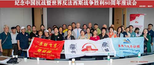 座谈会由云南省飞虎队研究会、美国飞虎寻访团、苏联飞鹰寻访团、在英中国抗日老战士后人联谊会、美国飞虎友好协会、美国飞虎研究院、美国飞虎传播协会、飞虎驼峰国际友好联盟、名人网、公共外交网、中旗网、北京红色寰宇文化传播中心联合举办。由中国延安精神研究会会员、北京八路军山东抗日根据地研究会首任青年部部长、世界反法西斯和平文化中心倡建发起人胡山主持。 中华英烈褒扬事业促进会理事、八路军研究会名誉会长陈人康、美国飞虎队友好协会会长许绍理、美国飞虎队传播协会会长虞清,俄中新丝绸之路文化发展基金会、俄罗斯晋商总商会会长高先、中国人民伟大的朋友斯诺家族的后人埃里克·福斯特、101岁八路军老报人陈英、抗战时期先后在延安中央军委三局、军委二局工作的108岁老红军胡正先、原北京市航空联谊会名誉会长李裕等致辞。