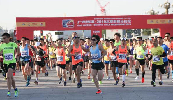 2019年北京国际长跑节暨北京半程马拉松比赛14日上午7时在天安门广场鸣枪起跑。随着发令枪声2万名跑者迎着春日的朝阳奔向鸟巢,将21.0975公里的赛道,变成一场燃情嘉年华,公司工会组织部分员工也穿梭在2万人的参赛大军中。