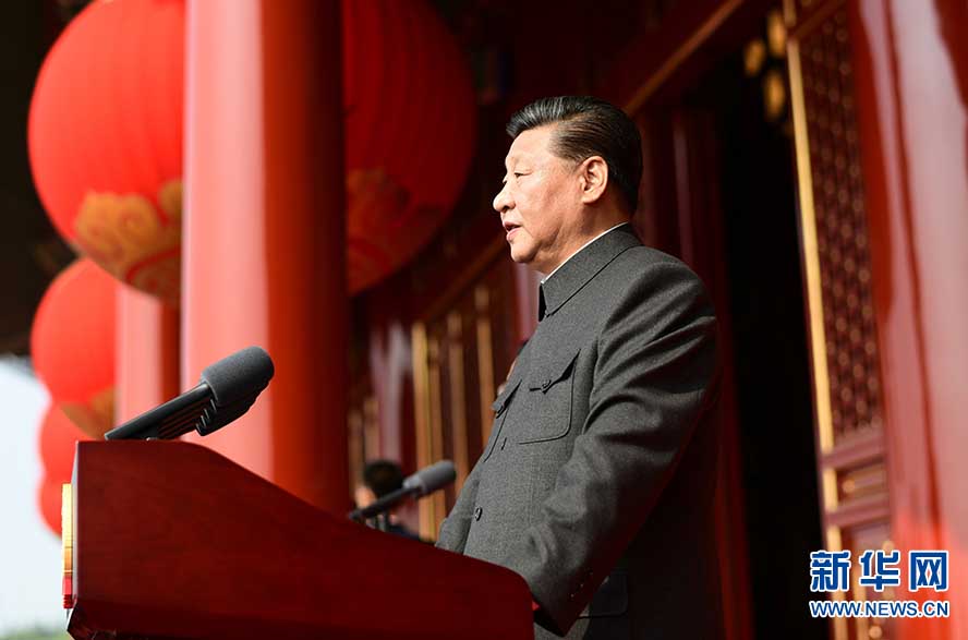 习近平在讲话中指出,70年前的今天,毛泽东同志在这里向世界庄严宣告了中华人民共和国的成立,中国人民从此站起来了。这一伟大事件,彻底改变了近代以后100多年中国积贫积弱、受人欺凌的悲惨命运,中华民族走上了实现伟大复兴的壮阔道路。70年来,全国各族人民同心同德、艰苦奋斗,取得了令世界刮目相看的伟大成就。今天,社会主义中国巍然屹立在世界东方,没有任何力量能够撼动我们伟大祖国的地位,没有任何力量能够阻挡中国人民和中华民族的前进步伐。