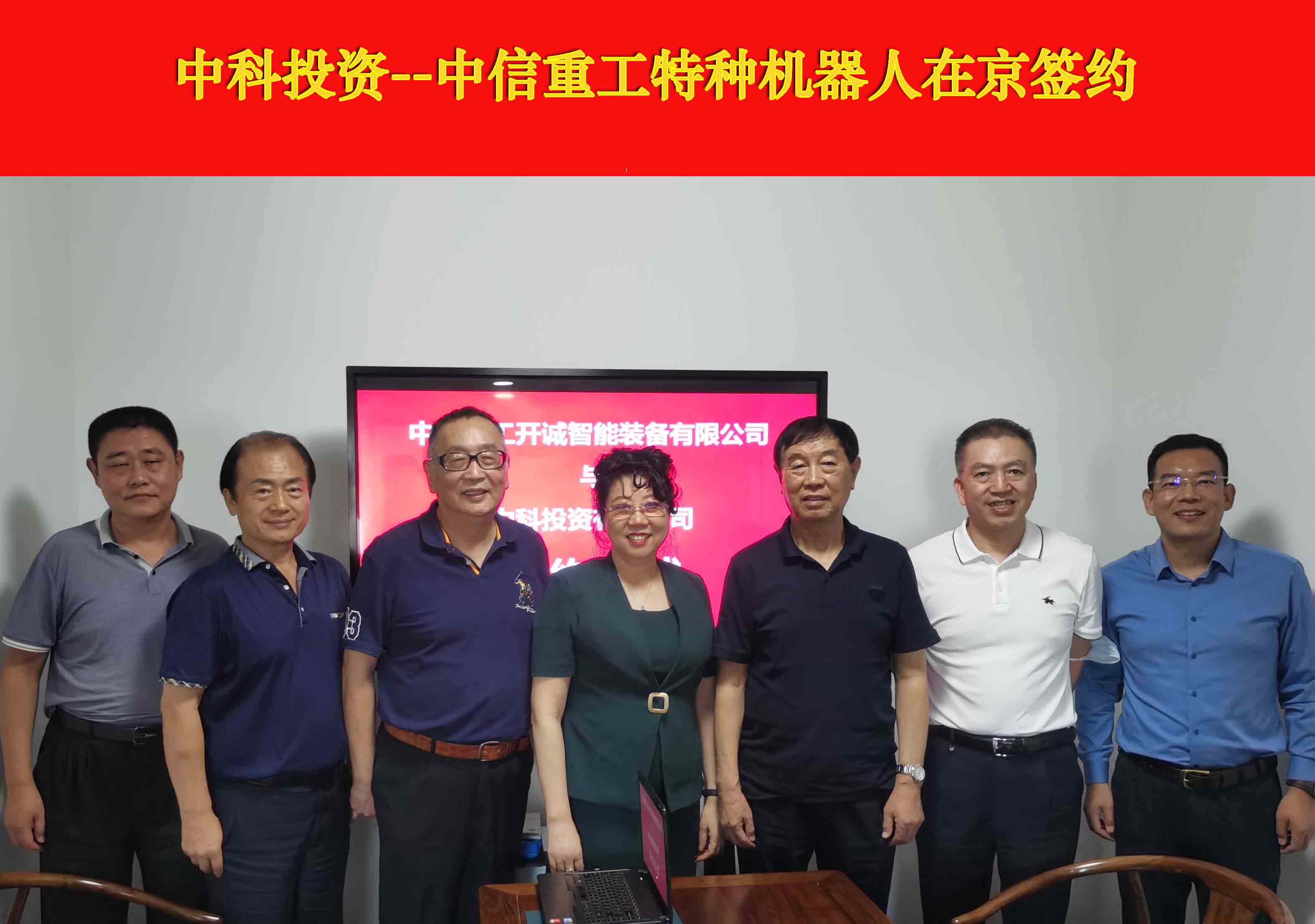 中科投资与中信重工特种机器人在北京签约。中科投资董事长吴董、董事冯总等相关部门负责人;中信重工董事长许董、副总经理刘总等相关部门负责人参加了签约仪式。合作双方将共同担负起社会责任,共同助力智能机器人造福人类。