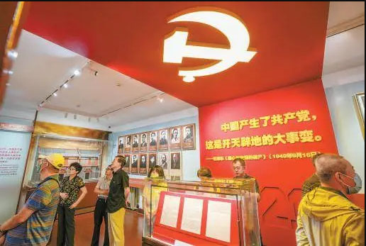 香山革命纪念馆一层专题展厅,由序篇“党对自我革命的探索与实践”以及“立好规矩进京‘赶考’”“从严治党 香山答卷”“凝聚民心 汇聚力量”三部分组成,重点聚焦中国共产党香山时期管党治党的历史实践,同时结合新时代全面从严治党的现实观照,将党的自我革命精神贯穿展览始终。 “ 党的七届二中全会”等从中央新影引进的珍稀历史影像资料穿插布置在展厅中,相关影像均为首次向社会公开;穿过“城门”,一座古色古香的“北平市公共广告牌”上张贴着人民解放军入城纪律,让人身临其境;废旧报纸糊成的信封、手工缝制了红星图案和“为人民服务”字样的针线包,诠释着“南京路上好八连”艰苦朴素的优良传统……此次展览共展出历史图片近240张、珍贵文物文献260余件(套)。在纪念馆内我们看到中国人民解放军渡江战役时期使用的木船、开国大典上使用的“九头鸟”喇叭、开国大典珍稀影像……一件件文物从历史中走来,折射出革故鼎新、筑基开元的光辉;一件件红色展品,犹如香山金秋的漫山红叶,映照着中国共产党人的火热初心。 “钟山风雨起苍黄,百万雄师过大江。”在香山期间,中共中央指挥的渡江战役,吹响了“打过长江去,解放全中国”的伟大进军号角。在这里就有记录着这段历史的珍贵藏品——渡江战役期间人民解放军使用的木船。从西柏坡进京时乘坐的同款吉普车、“劳动大学”的“七一”证章、渡江战役期间使用的木船、开国大典上使用过的大红灯笼……这些都是香山革命纪念馆中,见证那段惊心动魄激荡人心的岁月的镇馆之宝。新中国成立的欢欣、荣耀,中国人民解放军与老百姓的鱼水深情都融汇其间。翻开风起云涌的红色篇章,中华优秀传统文化一直作为蕴含其中的动力之源,贯穿于中国共产党奋进百年的实践进程。2023年是中国共产党建党102周年,我们站在香山革命纪念馆,红色文物、红色景观、红色影像、红色雕塑、红色油画等为人们呈现了一幅生动的“红色画卷”。 我们从历史深处走来,回望过去,在这里可以看到中国共产党走过的艰难历程,追寻老一辈无产阶级革命家们的足迹,了解新中国的得来不易,感悟革命精神,从中汲取奋进力量;眺望未来,我们重温赶考之路,就是要将香山革命精神发扬在新时代的奋斗历程中,我们要赓续红色血脉,将红色基因融入血液化为行动,牢记红色党史,不忘昨天的苦难辉煌,无愧今天的使命担当,不负明天的伟大梦想,在新的起点上继续推动文化繁荣、建设文化强国、建设中华民族现代文明。沿着党中央在香山的红色足迹,通过一件件红色文物,追寻那时的红色印记,寻觅红色基因密码,追访奋斗精神。深厚的红色文化内涵,让干部、党员们在踏寻红色足迹的同时,学习老一辈革命家在香山时期为国为民的丰功伟绩,感悟思想伟力,激发奋进力量。