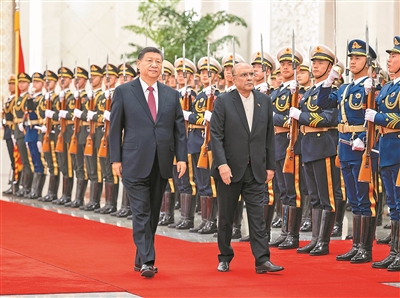 本报北京2月5日电 2月5日下午,国家主席习近平在北京人民大会堂同来华进行国事访问的巴基斯坦总统扎尔达里举行会谈。 习近平指出,中国和巴基斯坦是铁杆朋友和全天候战略合作伙伴。历久弥坚的中巴传统友谊由两国老一辈领导人亲手缔造,是两国和两国人民的宝贵财富。近年来,双方坚定相互政治支持,保持密切高层交往,深入推进中巴经济走廊建设和各领域合作,树立了国与国关系典范。中方愿同巴方在各自现代化道路上携手前行,加快构建新时代更加紧密的中巴命运共同体,更好造福两国人民,为地区和平、稳定、繁荣作出更大贡献。 习近平强调,中方始终从战略上看待中巴关系,对巴友好政策保持高度稳定性和延续性,始终面向巴基斯坦全体人民。中方将一如既往坚定支持巴方维护主权、独立和领土完整,打击恐怖主义,走符合本国国情的发展道路。双方要深化发展战略对接和治国理政经验交流,加强各层级各部门交往,不断巩固中巴关系的政治基础。欢迎巴基斯坦从中国进一步全面深化改革、扩大高水平对外开放中率先受益,中方愿同巴方深化各领域务实合作,共同打造中巴经济走廊合作“升级版”,帮助巴方夯实发展基础、释放发展潜力。希望巴方强化对在巴中国人员、项目和机构的安全保护,加强双多边反恐合作。明年是中巴建交75周年,双方要深化文化、教育、媒体等领域交流合作,让中巴友谊薪火相传。中方赞赏巴方积极支持三大全球倡议并参与有关合作,愿同巴方一道,坚持和平共处五项原则,抵制单边主义和霸权行径,加强多边协作,维护发展中国家的共同利益。 扎尔达里表示,巴基斯坦和中国是亲密邻邦,更是全天候的好朋友、好伙伴。巴中友谊历经风雨,两国人民的心始终紧紧相连。无论形势如何变化,巴方都将毫不动摇同中方站在一起。巴方感谢中方为巴经济社会发展提供无私帮助,愿学习中国成功经验,推动中巴经济走廊和各领域合作高质量发展,助力巴基斯坦实现工业化和现代化。在习近平主席英明指引下,中国在国际事务中发挥越来越大的引领作用,日益成为维护世界和平、稳定、繁荣的重要力量。巴方愿同中方密切配合,坚持多边主义,维护自由贸易,促进两国和广大发展中国家的共同利益。 会谈后,两国元首共同见证签署共建中巴经济走廊、贸易、科技、广播电视等领域多项双边合作文件。 会谈前,习近平在人民大会堂北大厅为扎尔达里举行欢迎仪式。 天安门广场鸣放21响礼炮,礼兵列队致敬。两国元首登上检阅台,军乐团奏中巴两国国歌。扎尔达里在习近平陪同下检阅中国人民解放军仪仗队,并观看分列式。 当晚,习近平在人民大会堂金色大厅为扎尔达里举行欢迎宴会。 王毅参加上述活动。 《 人民日报 》( 2025年02月06日 01 版) (责编:袁勃、赵欣悦) |